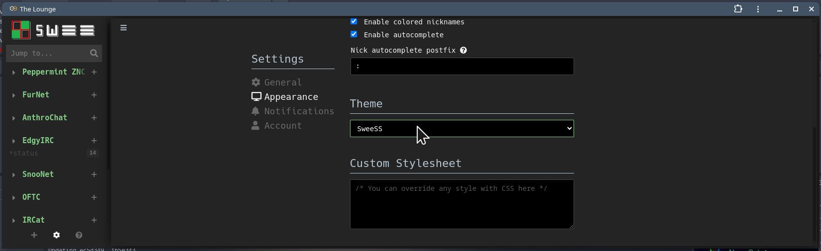 https://www.npmjs.com/package/thelounge-theme-sweess